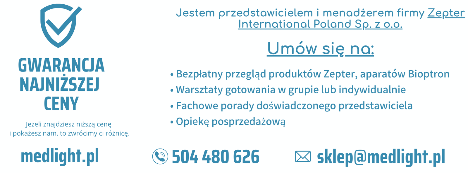 Opiekę Certyfikowanego Przedstawiciela z doświadczeniem - przez całą dobę 24/7. Możesz do mnie dzwonić Tel: 504 480 626 lub pisać: SMS, e-mail sklep@medlight.pl