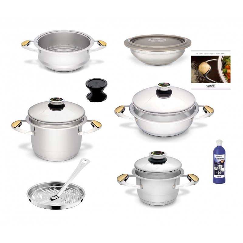 13-częściowy zestaw MAXI PLUS to zestaw dla rodziny. Dzięki kombinacjom w ramach zestawu są niewyczerpane. Połączenie jakości metalu 316L i akutermicznego dna gwarantują zdrowe jedzenie przygotowane w niskiej temperaturze. Wszystkie komponenty są zaprojektowane do pracy w połączeniu, można gotować kilka potraw jednocześnie na jednym źródle ciepła, co zmniejsza rachunki o 70%.